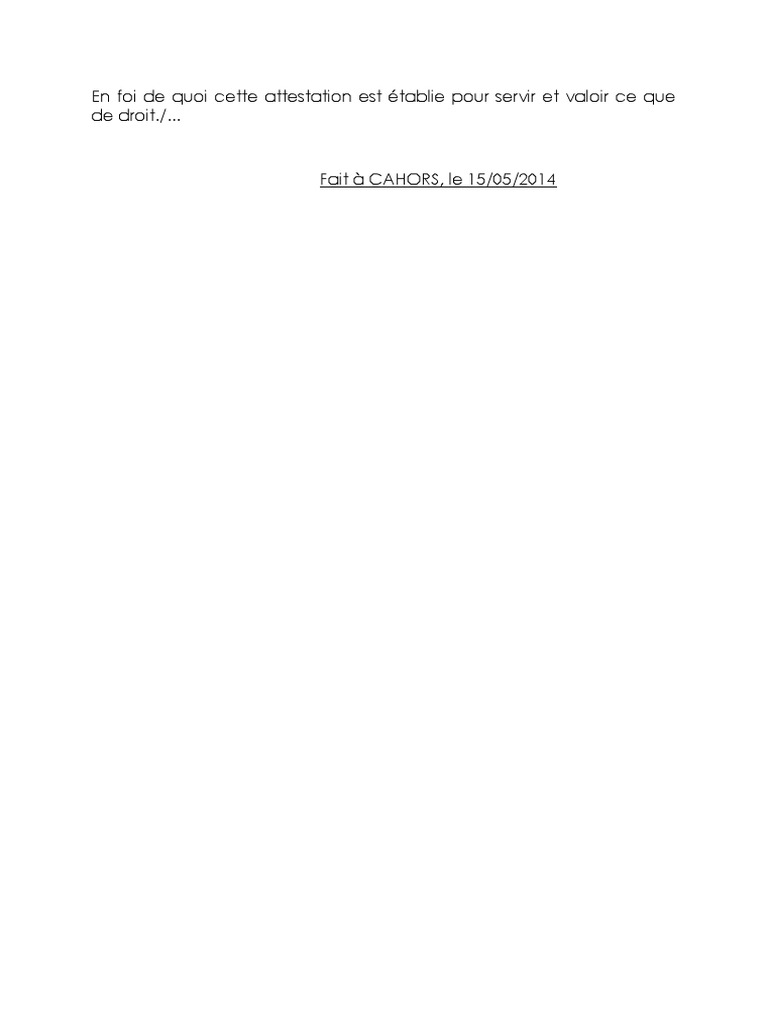 A valoir ce que de droit. La locution fait pour valoir ce que de droit ou fait pour servir et valoir ce que de droit est utilisée dans de nombreux documents tels que lattestation sur lhonneur et la lettre de procuration. En foi de quoi la présente attestation est délivrée pour servir et valoir ce que de droit. Valoir ce que de droit pour locution employée dans un acte écrit dans lequel lauteur atteste la réalité soit dun fait témoignage soit dune libération paiement soit dune qualité pour servir de preuve à celui que lacte concerne. Fait pour valoir ce que de droit. Faire référence à littéraire attester et user dun droit formal. Elle peut également être indiquée dans les documents rédigés par les avocats et notaires.