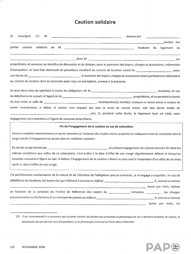 Acte de caution solidaire pdf. Pour vous aider à le rédiger vous pouvez librement utiliser le modèle dacte de cautionnement solidaire téléchargeable ci dessus. Il est tout à fait possible dutiliser un modèle puis dy apposer sa signature. Acte de caution solidaire pdf word. Modèle de caution solidaire en meublé modèle de caution solidaire pour location meublée au format word et pdf. En meublé lacte de cautionnement est identique à la location nue. Ce formulaire de création dacte de cautionnement vous permet de personnaliser votre acte de caution solidaire pour ensuite limprimer au format word et pdf.