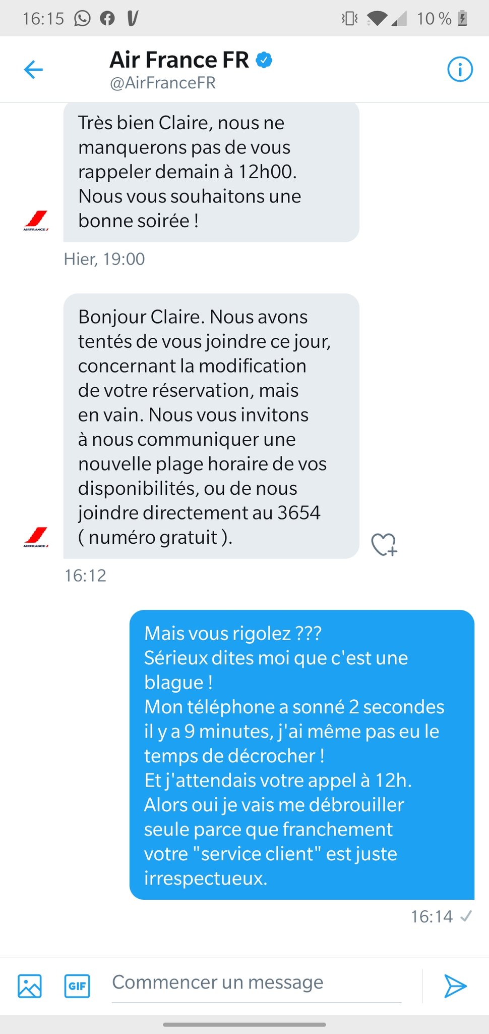Elle dessert une trentaine de grandes villes en france et relie plus de 300 destinations sur 118 pays à travers les cinq continents. Air france met tout en œuvre pour répondre à vos questions et satisfaire vos demandes. Dites nous via le système de vote en dessous si le numéro a fonctionné pour que lon corrige si besoin. 01 70 03 94 66 ou 01 70 03 94 60 gratuits il y a aussi le 1 84 03 02 48 gratuit. Opérationnel 7j7 vous pouvez joindre cette équipe grâce au numéro de téléphone air france qui est le 0969390215. Si vous rencontrez un problème avec votre réservation internet ou avec lhôte chez qui vous avez logé nous vous donnons le numéro de téléphone gratuit qui vous permet de contacter le service client français.