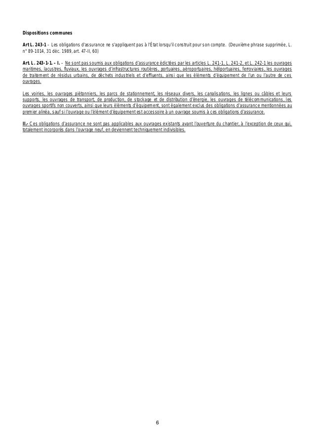 L111 20 v en dehors des actions régies par les articles 1792 3 1792 4 1 et 1792 4 2 du code civil les actions en responsabilité dirigées contre les constructeurs désignés aux articles 1792 et 1792 1 du code civil et leurs sous traitants se prescrivent par dix ans à compter de la réception des travaux. Code civil article 1792 masquer le panneau de navigation article précédent article suivant imprimer. Voici un arrêt tout à fait intéressant pour qui sintéresse au champ dapplication de larticle 1792 4 3 du code des assurancespuisquaucun des termes dudit articles ne permet de lexclure il nest pas interdit den faire application aux désordres réservés à la réceptioncest en ce sens qua. Daprès larticle 1792 3 du code civil le constructeur est responsable du bon fonctionnement de son ouvrage pendant une période de 2 ans à compter de la réception des travaux. Article 1792 3 du code civil les autres éléments déquipement de louvrage font lobjet dune garantie de bon fonctionnement dune durée minimale de deux ans à compter de sa réception. Annexe article 45 vt loi n78 12 du 4 janvier 1978 art.