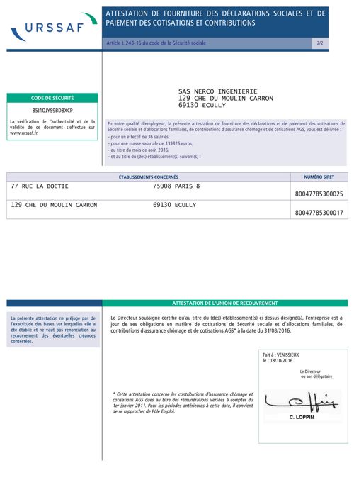 Il doit se procurer lattestation sociale de vigilance et sassurer de lauthenticité de chacune des attestations sociales de vigilance remises par son cocontractant ou son sous traitant. Les attestations de vigilance sont délivrées par lurssaf uniquement sur internet. Lattestation de vigilance qui remplace lattestation de marchés publics permet de garantir que lentrepreneur sacquitte de ses obligations de déclaration et de paiement des cotisations. Travailleurs indépendants et auto entrepreneurs téléchargez vos attestations de la sécurité sociale pour les indépendants ex rsi. Lattestation urssaf de vigilance est requise pour les cocontractants relevant du régime général de sécurité sociale. Dans le cadre de lattribution dun marché public le candidat doit produire une attestation de vigilance attestation de régularité qui remplace lattestation de marché public depuis le 1 er avril 2016.