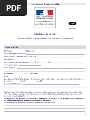 Laccès au compte est temporairement désactivé pour maintenance. La conclusion dun pacs. Déclaration sur lhonneur fait à le. Modèle dattestation de témoin cerfa n 1152703 ministère chargé de la justice permet dindiquer à la justice que lon a été témoin dun fait. Article 441 7 est puni dun an demprisonnement de de 15000 damende le fait. Veuillez nous excuser pour ce désagrement.