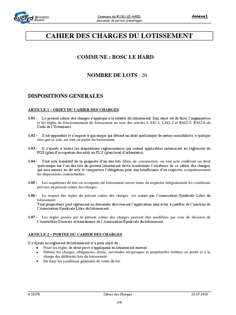 Cahier des charges lotissement. Les autres dispositions dun cahier des charges qui auraient pour objet ou pour effet dinterdire ou de restreindre le droit de construire ou encore daffecter lusage ou la destination des biens au sein du lotissement cesseront davoir effet en 2019 sauf décision contraire des colotis propriétaires au sein du lotissement et dune publication du cahier des charges au service. Son objet est de définir les rapports privés entre les colotis les propriétaires de lots leurs droits et obligations. Réflexion sur le sort juridique du cahier des charges dun lotissement alors que la disparition programmée pour mars 2019 de tous les cahiers des charges des lotissements autorisés depuis 1977 naura donc pas lieu la loi elan de novembre 2018 confirmant que le cahier des charges continuera donc à régir les relations entre les colotis. 442 9 du code de lurbanisme par la loi alur. Je voulais dire le règlement du lotissement. Le respect des règles fixées dans le cahier des charges dun lotissement nétant pas contrôlé au stade du permis de construire la purge des délais de recours dune autorisation durbanisme ne fait aucunement obstacle à la faculté dont dispose tout colotis de saisir le juge judiciaire dune action en démolition dirigée contre un bâtiment érigé en méconnaissance du.