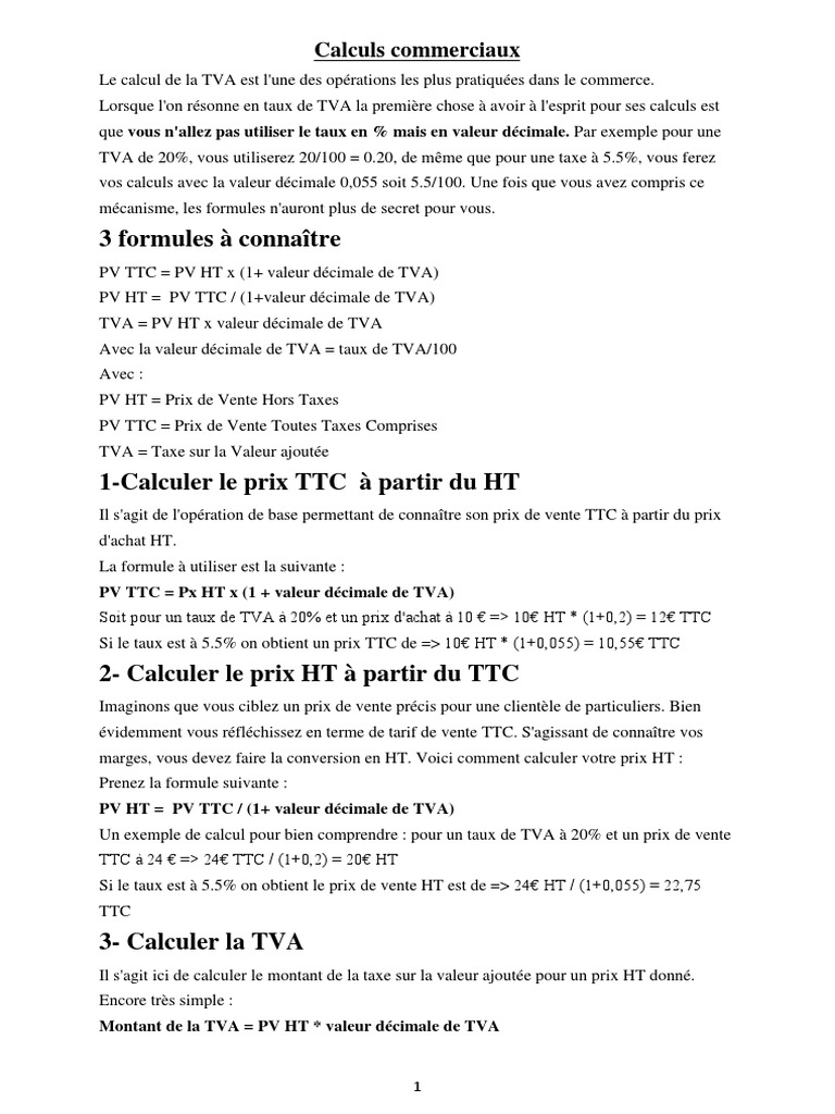 Afin de pouvoir calculer le montant de la tva à partir dun prix ht ou dun prix ttc il est impératif de connaître le taux de tva applicable. Une opération sur les pourcentages. Les différents taux de tva en vigueur en france. Prix ht prix ttc. Il existe différents taux selon la nature des produits commercialisés.
