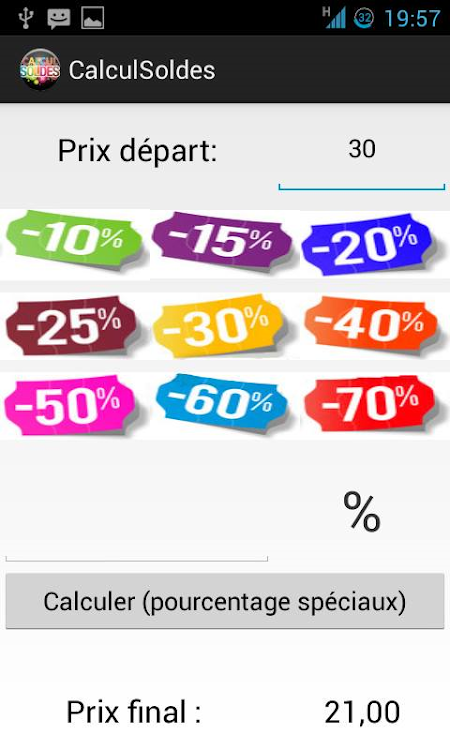 Calculer un pourcentage ou une remise pour calculer un pourcentage ou une remise il faut prendre le prix de départ le multiplier par le pourcentage de réduction 30 40 50 70. Exemple pour un vêtement ou des chaussures à 70 et soldés à 30. Variation ou taux dévolution en quel est le taux dévolution en de 750 à 775. Appliquer un pourcentage à une valeur. La calculatrice calcul solde vous permet de calculer un prix soldé une remise en euro ou en pourcentage de calculer un pourcentage dune somme et enfin de connaitre le prix non soldé. Diviser le prix de base par 10.