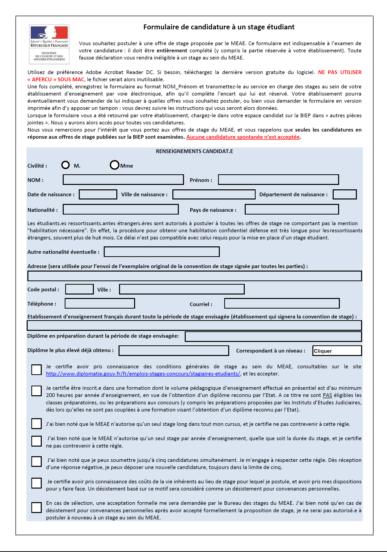 Candidature pour un stage. Voici un modèle de lettre de motivation pour faire une demande de stagevous pouvez le télécharger au format word pour le modifier dans un logiciel de traitement de texte afin de lenvoyer par courrier. Quil sagisse dune réponse à une offre de stage ou dune candidature spontanée pour intégrer une entreprise en tant que stagiaire vous pouvez utiliser ce modèle de lettre de demande de stage gratuit accompagné de nos conseils pour vous aider à la rédiger. Madame monsieur etudiant en dernière année à nom de lécole et passionné par le développement logiciel jai lu dans la presse que vous avez récemment lancé une campagne de recrutement de stagiaires. Candidature pour un stage conventionné de nombre de mois mois comme nom du stage souhaité madame monsieur actuellement étudiant en nom de ta formation ou cursus académique à nom de ton université ou école je suis aujourdhui à la recherche dune expérience dans le marketing nécessaire à lobtention de mon nom du diplôme que vous obtiendrez à la fin de. Dans le cadre dune candidature spontanée pour un stage vous pouvez solliciter des entreprises avec votre cv et une lettre de demande de stage. Noubliez de personnaliser ce courrier avec vos informations en remplaçant le texte entre parenthèses.