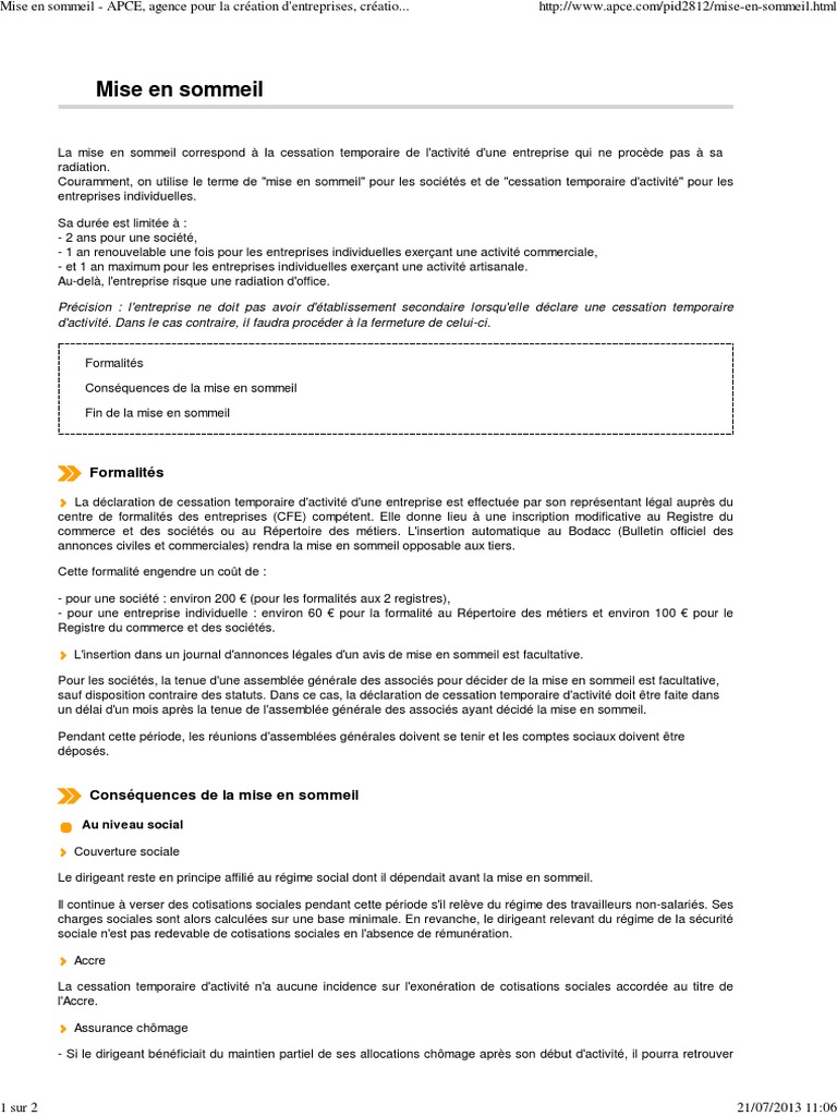 La cessation temporaire dactivité de lentreprise individuelle si votre entreprise individuelle ei connaît des difficultés conjoncturelles vous pouvez envisager de la mettre en sommeil avant de penser à la fermer définitivement pendant une durée dun an au maximum et renouvelable une fois si lei exerce une activité commerciale. Déclarez votre cessation dactivité dentreprise individuelle.