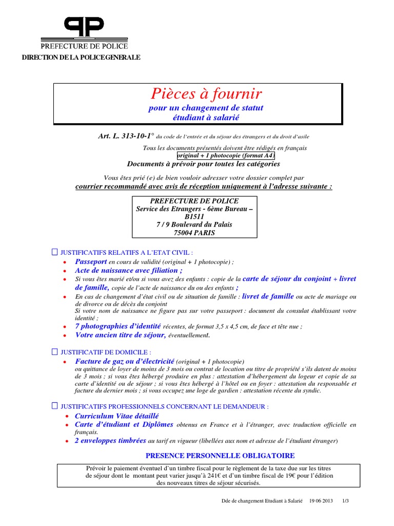Changement de statut tudiant salari paris. Le changement de statut est une procédure accordant à létranger en situation régulière le droit de demander que le motif de son droit au séjour soit changé au profit dun autre. De très nombreux étudiants étrangers se posent la question des modalités de changement de statut afin dobtenir celui de salarié. Si dans le cadre du régime de droit commun plusieurs procédures sont offertes aux étudiants étrangers afin quils procèdent à un changement de statut de celui d étudiant à celui de salarié les étudiants algériens ne sont en principe pas concernés par les possibilités de travailler dans lun des métiers dits en tension ouverts aux non européens dont la. Cependant dans la. Les détails qui font la différence. Prefet de la seine saint denis changement de statut.