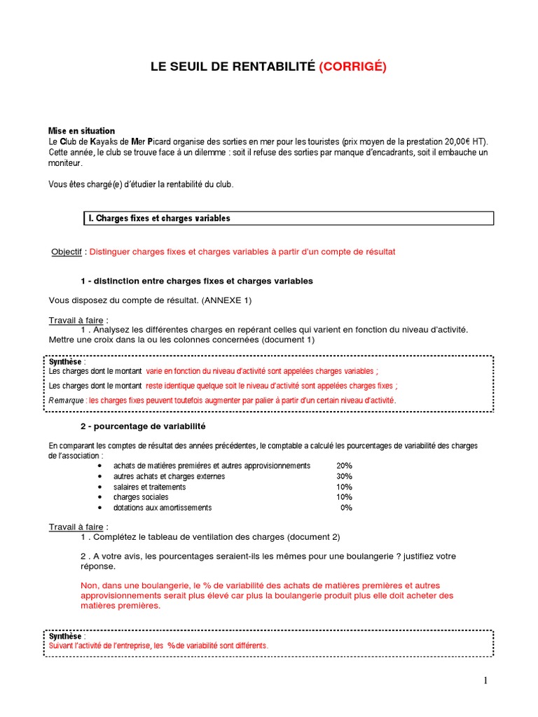 Charges fixes et variables. Il fait la liste des recettes et des charges engagées par lentreprise durant une période données. Il faut ajouter à cela les charges financières qui regroupent notamment le remboursement des intérêts de prêt bancaire charges fixes ainsi que les charges exceptionnelles frais de justice etc. En revanche si lentreprise a une politique de salaire variable. La plus importante charge fixe pour une société est la masse salariale. Charges fixes et variables. Ces charges servent à calculer le seuil de rentabilité.