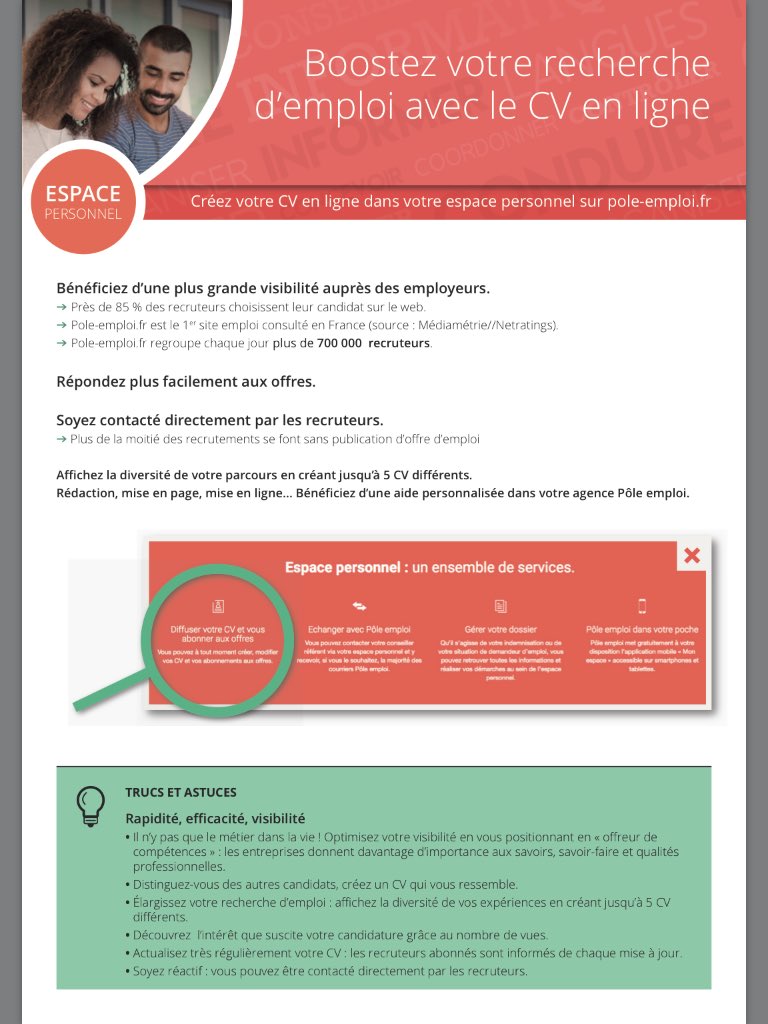 Cv en ligne pole emploi. Offrez vos compétences aux recruteurs en mettant votre cv en ligne et recevez directement leurs propositions. 08082016 2253. Présentation du cv couleurs intitulé nom des rubriques notre site de création de cv en ligne vous offre de nombreuses possibilités de personnalisation pour créer le cv qui. Minscrire me réinscrire. Exemple de cv pole emploi. Application en ligne gratuite de création de cv en pdf.