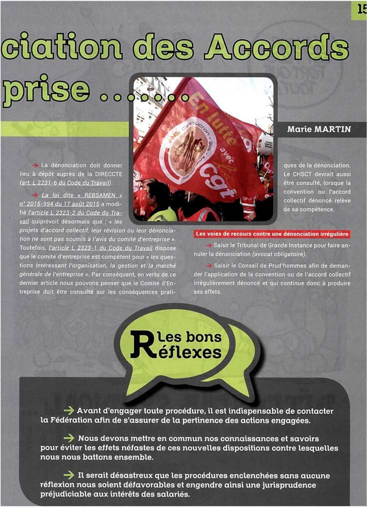 Le code de travail donne la possibilité aux parties signataires dun accord dentreprise employeurs comme syndicats de travailleurs dengager une procédure de dénonciation lorsquelles jugent laccord en question inadapté à leur besoin. Les règles de révision et de dénonciation des accords collectifs sont modifiées par la loi travail.