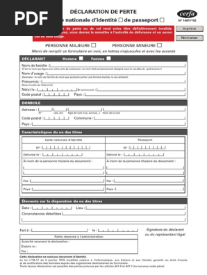 Declaration perte carte identite. En cas de perte de votre carte didentité ou passeport perte à létranger dans le cas où vous avez perdu votre carte didentité ou votre passeport à létranger les démarches sont les mêmes que pour un vol il faut vous adresser aux autorités de police puis à lambassade ou le consulat le plus proche où vous devrez remplir le formulaire cerfa 1401101. Un formulaire de demande de carte didentité est remis au guichet. Pour refaire une carte didentité perdue il faut se rendre dans une mairie équipée. En cas de carte didentité volée une déclaration de vol doit être adressée au commissariat ou à la gendarmerie du lieu où linfraction sest produite. Un récépissé de déclaration de vol vous est alors remis. Avec ce récépissé se rendre personnellement à la mairie de son domicile pour faire une demande dune nouvelle carte didentité.