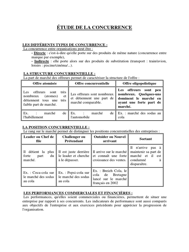 Etude de la concurrence. A vous de bien choisir les axes de la carte part de marché positionnement haut moyen bas de gamme etc. Etude de la concurrence author. Structure dun marché qui se caractérise par une pluralité dentreprises en compétition les unes par rapport aux autres pour bénéficier de la préférence des consommateurs. En réalité cest un processus permanent. 4192011 54453 pm keywords. La deuxième erreur à ne pas commettre est de croire que lanalyse de la concurrence nest que ponctuelle.