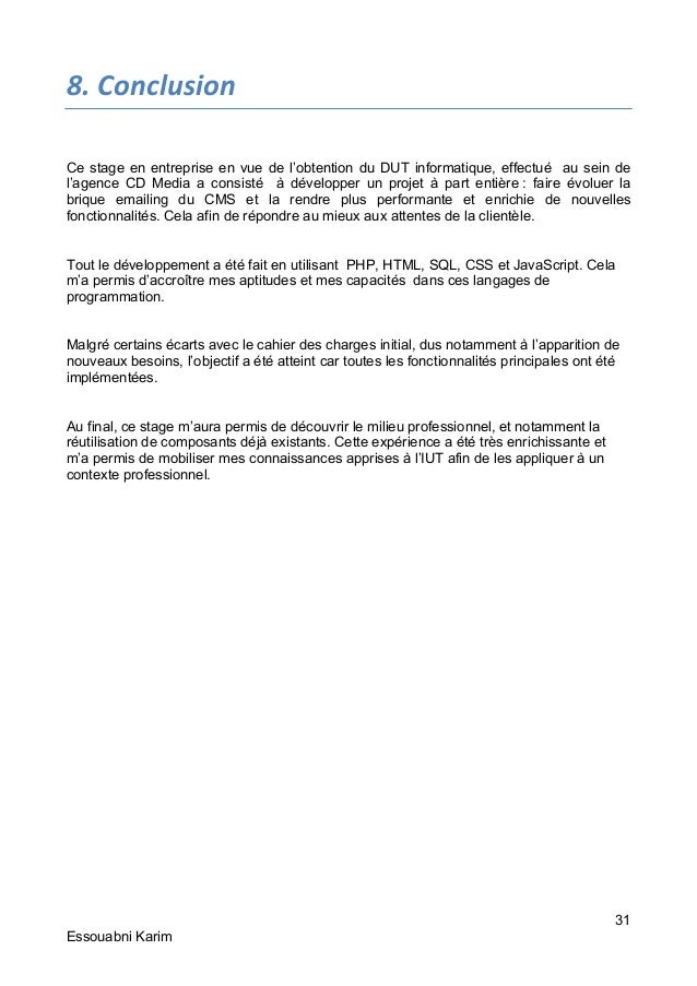 Rapport De Stage De Fin D Etudes Du Dut