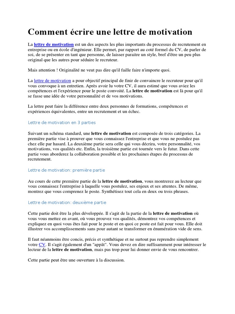 Assurez vous quelle reste simple positive et concise tout en invitant le lecteur à laction. La lettre de motivation cest le bouton poussoir.