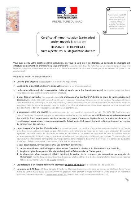 Tous les documents ne sont pas acceptés. Merci de me confirmer quil faut le certificat de vente carte grise barrée et signée par le vendeur ci attestation de domicile certificat de non gage et certificat de controle technique de de 6 mois si le véhicule a de 4 ans. Le justificatif de domicile doit toujours comporter le nom et prénom du demandeur. Toute reproduction ou représentation totale ou partielle de ce site par quelque procédé que ce soit sans autorisation expresse est interdite. Il est obligatoire de présenter un justificatif de domicile récent 3 mois pour toute démarche de changement de domicile sur une carte grise. En fonction de la situation du demandeur la nature du document à fournir varie.