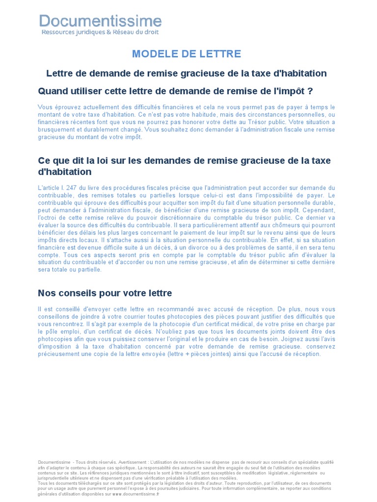 Cette démarche peut être motivée par diverses raisons des difficultés financières. Exemple de lettre aux impôts demande de dégrèvement taxe dhabitation lettre type de demande de remise de la taxe fonciere ou de la taxe dhabitation aux impots une demande de dégrèvement dun impôt correspond à un allègement ou à une suppression de celui ci on parle alors dexonération. Aussi je sollicite auprès de vos services un dégrèvement de ma taxe dhabitation. Vous pouvez être exonéré de la taxe dhabitation pour votre résidence principale dans les cas suivants. Modèle de lettre de dégrèvement taxe dhabitation bonjour voici un exemple. Pour un dégrèvement de taxe dhabitation la demande doit être déposée avant le 31 décembre de lannée n1.