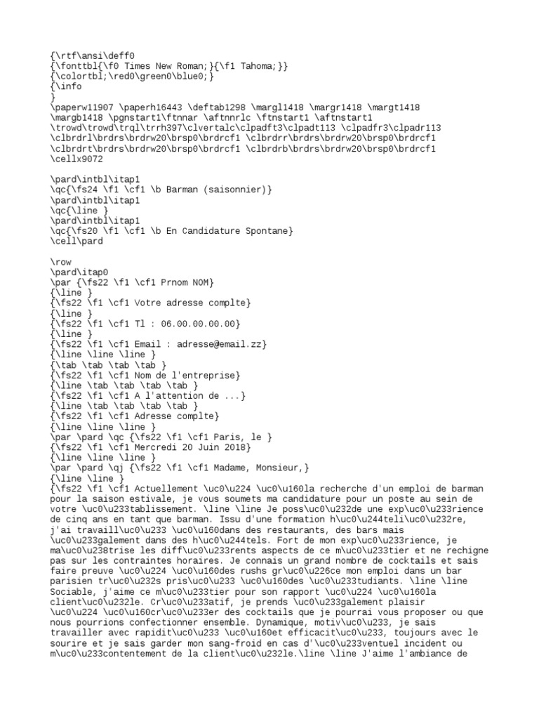Pdf Lettre De Motivation Serveur Saisonnier