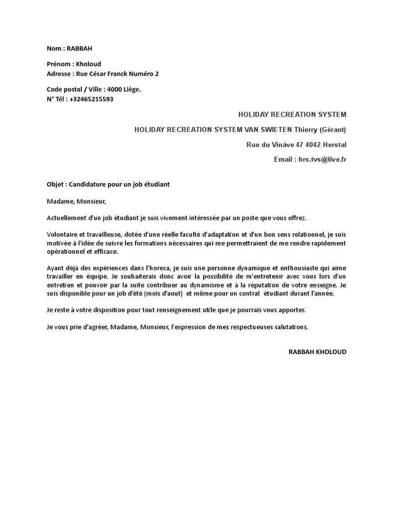 Lettre de motivation pour un job étudiant en été. Inspirez vous de ces exemples de lettre de motivation que nous vous proposons pour créer votre propre lettre de motivation personnelle retenez les tournures de phrase notez les qualificatifs employés pensez à consulter les fiches. Si beaucoup détudiants travaillent pendant lannée universitaire il est également possible de travailler pendant les vacances scolaires à la fin des examens.