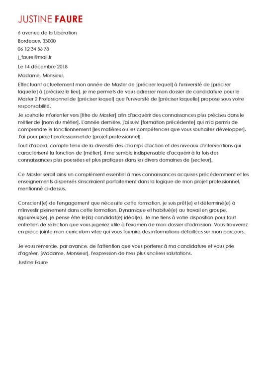Exemple de lettre de motivation pour un master pour postuler à un m1m2 voici un modèle de lettre de motivation afin de compléter votre dossier dinscription. Passez ladmission en envoyant une lettre de motivation master meef impeccable.