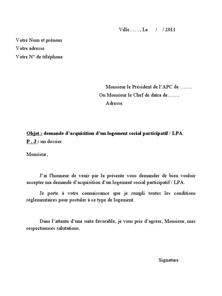 Rédiger une lettre pour demande de logement fermé signaler. Pour transformer votre modèle de lettre demande de logement social hlm auprès du maire ou dun élu en pdf utilisez le logiciel de traitement de texte gratuit libreoffice ou openoffice qui permet de faire directement la conversion de word à pdf. Vous avez des problèmes de santé et vous voulez demander à la mairie de votre ville de vous attribuer une habitation à loyer modéré afin de pouvoir vous soigner dans de meilleures conditions. En effet ma situation actuelle ne me permet malheureusement pas de pouvoir accéder à un logement du secteur privé. Vous pouvez rédiger cette lettre de demande de relogement dans un logement social plus grand lorsque par exemple le nombre de personnes dans votre habitation augmente et que votre logement nest plus adapté. Demande de logement social madame monsieur par la présente je me permets de solliciter vos services dans le cadre de ma recherche de logement social.