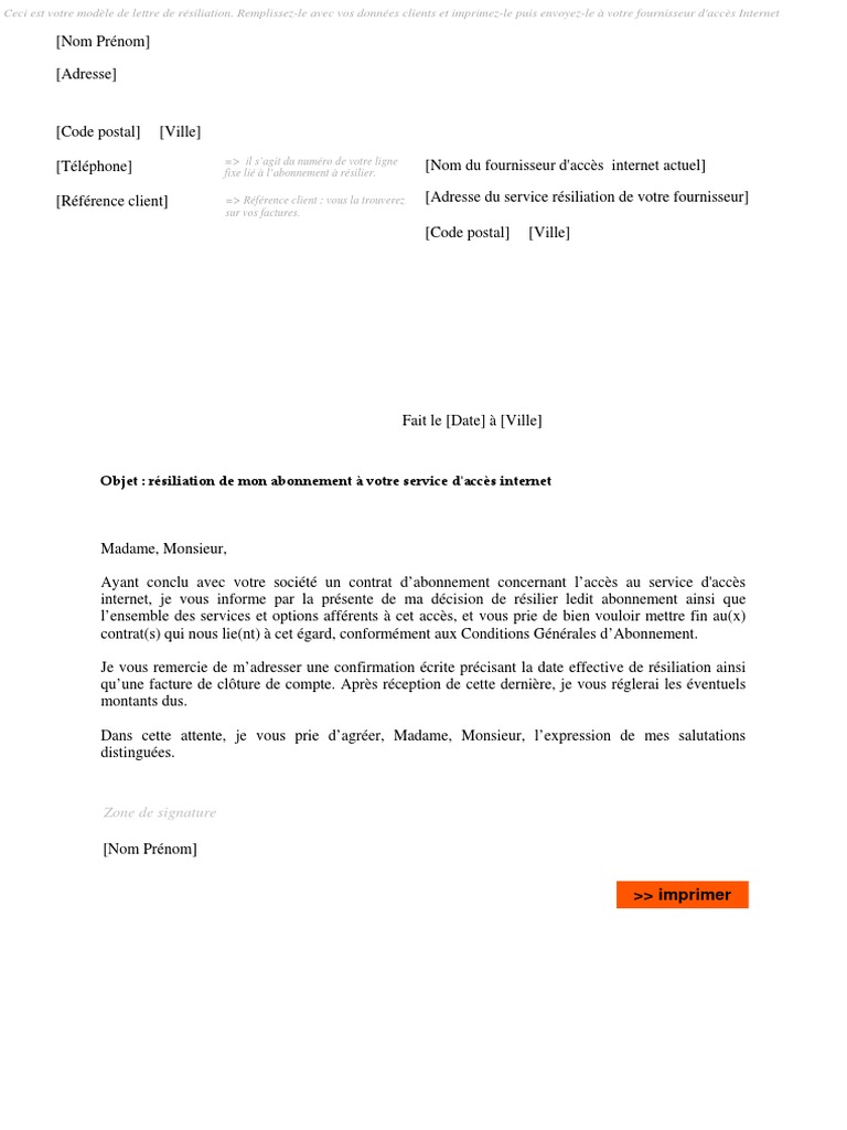 Il est possible de résilier son abonnement sfr en rédigeant une lettre de résiliation dont voici un modèle. Nom prénom adresse code postal ville numéro de client n tél. Que ce soit pour un magazine une salle de sport ou tout autre service vous pouvez vous abonner sur différentes périodes selon ce qui est proposé par le fournisseur. Lettre de résiliation madame monsieur par la présente je vous fais part de ma volonté de résilier mon contratabonnement préciser sil sagit dun contrat ou dun abonnement souscrit le préciser la date de début de contrat ou dabonnement auprès de vos services sous le numéro préciser le numéro de contratabonnement.