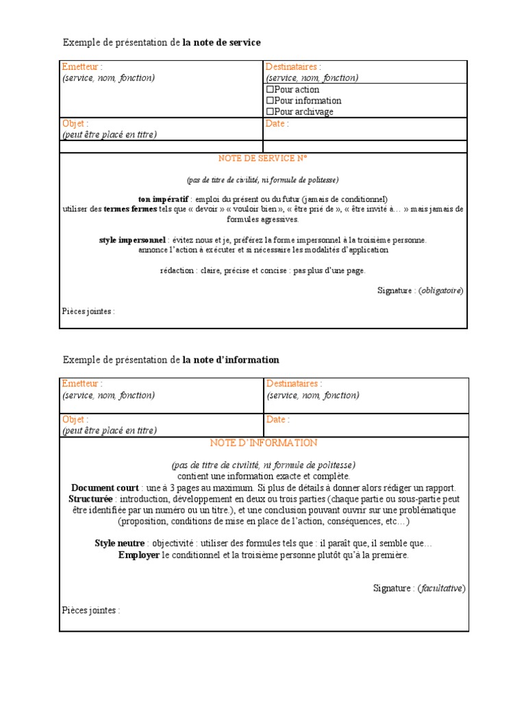 Communication dentreprise la communication interne. Laccès à internet. Note et note de service la note et la note de service sont des documents utilisés par les membres dune entreprise ou dun organisme pour échanger de linformation relative au travail. Comme il ny a pas dindication dexpéditrice au haut de cette note la personne a dû signer sa note de la même façon quon le fait dans une lettre. La note de service consiste en une information ou une instruction donnée par lemployeur aux salariés pouvant valoir règlement intérieur. Exemple de note de service.