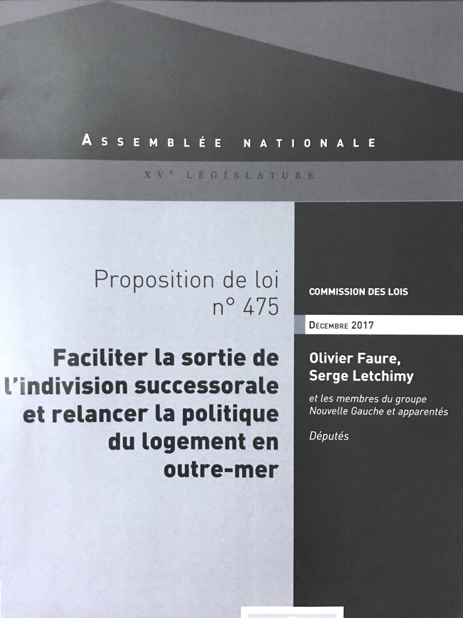 Il ny a pas de surprise au niveau de la procécédure que je vous avais indiquée au mois de mars. Lassemblée nationale a adopté ce mercredi 12 décembre 2018 en deuxième lecture et à lunanimité la proposition de loi sur lindivision successorale en outre mer. Le texte porté par le. Proposition de loi visant à faciliter la sortie de lindivision successorale et à relancer la politique du logement en outre mer n 475 déposée le 6 décembre 2017 nouvel onglet. Des règles encadrent la gestion du patrimoine en commun. Merci de votre aide.