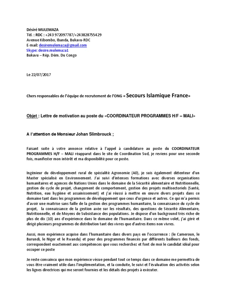 Avec lévolution des usages dautres lont remplacée par de simples emails. Si le cv reste un élément clé dune candidature la lettre de motivation constitue un pont relationnel qui peut savérer déterminant quant à lobtention dun entretien. Téléchargez le modèle. 6 un objet qui en dit long peu de candidats pensent à travailler lobjet de leur lettre. Vous trouverez dans cette fiche un exemple de lettre de motivation à télécharger. Si ta candidature répond à une offre demploi.