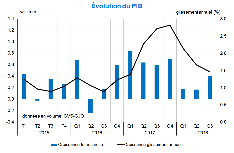 En première estimation sur lannée 2016 le solde des biens et services à 27 milliards se dégrade de près de 12 milliards par rapport à 2015. En 2020 le gouvernement table sur une croissance de 13 tandis que la banque de france prévoit 11 soit son taux le plus bas depuis 2016. Cette statistique montre le produit intérieur brut pib de la france du 3e trimestre 2014 au 1er trimestre 2020 en milliards deuros. La france elle occupe la 7e position du classement contre la 6e en 2018. En janvier 2018 linsee intègre le trafic de stupéfiants dans le calcul du pib à la demande de loffice européen de statistique eurostat 5. Le pib de la france en 2018 connaît une hausse estimée autour de 16.