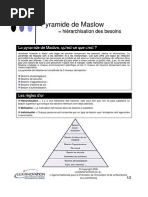 Pyramide de maslow pdf. Apprendre la lecture rapide facilement et sans effort. Avant de monter le toit il faut dabord monter les murs et avant les murs des fondations sont nécessaires pour que la maison tienne dans le temps. La pyramide de maslow est lun des modèles de la motivation les plus enseignés notamment en formation au management. A laide de ce cours pdf vous allez être capable de sinitier aux connaissances théoriques de la gestion des ressources humaines et à sa pratique dans un environnement en constant changement aussi vous allez avoir une idée générale sur les relations humaines dans lentreprise les enjeux la pyramide de maslow est donc criticable pour la pyramide de. La pyramide de maslow les jeudi demilie duration. Cest une méthode qui peut aider à mieux cerner un public visé pex.
