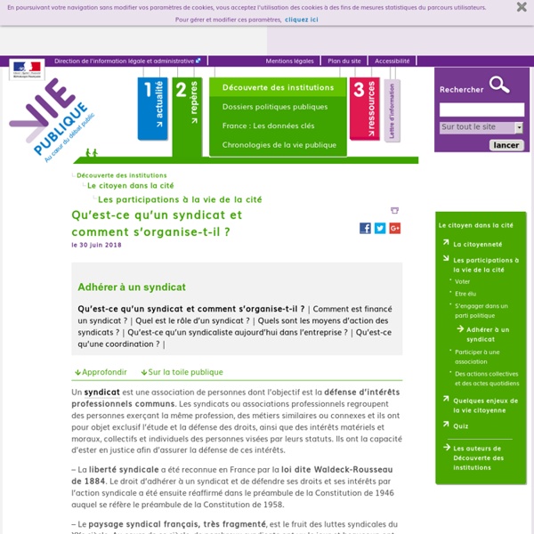 Les syndicats doivent se faire accréditer. Je ne comprends pas la correction. A quoi ça sert. Parce que je rejoins viou39. Quest ce quun syndicat. Dans les pays démocratiques ces organisations sont indépendantes de létat mais il les reconnaît et sont régies par un ensemble de lois qui précisent leur statut les modalités les.