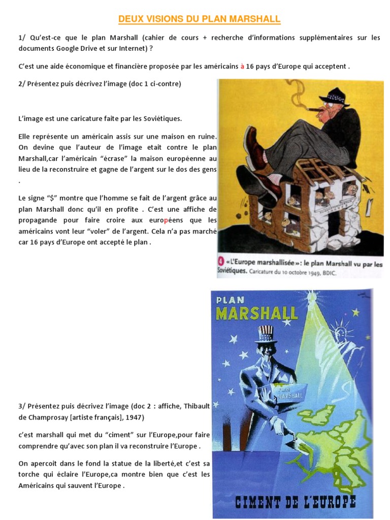 Le plan marshall fut refusé pour le bloc des pays de lest par staline qui le considérait comme une menace. Le terme est né dans limmédiat après guerre. Questionsdigischoolfr est le service digischool dédié aux questions réponses entre étudiants. Cest oublier que le plan marshall de 1947 a fructifié dans des sociétés déjà dotées dinfrastructures modernes éduquées respectueuses des droits individuels et du droit commercial. Pas moins de 16 pays ont ainsi reçu une aide économique ce qui a fait du plan marshall pendant la. Un répertoire de milliers de questions et milliers de réponses autours des diverses thématiques étudiantes afin de vous entraider et obrenir les meilleures informations et conseils en matières de cours.
