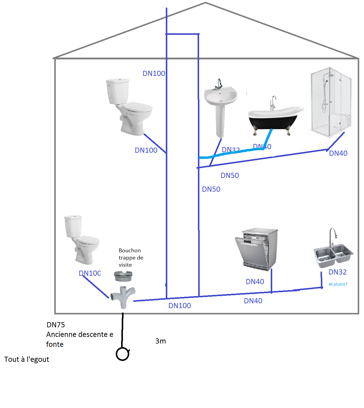 Demande dautorisation à la mairie du lieu du raccordement. Bonjour dans une procédure de divorce mon mari sest vu attribuer le domicile conjugal que jai quitté. Les travaux à votre charge. Les réseaux dégouts sont établis sous la voie publique. La réglementation du raccordement au tout à légout. Côté commune le réseau des canalisations pour eaux usées doit avoir une pente de 3 minimum.